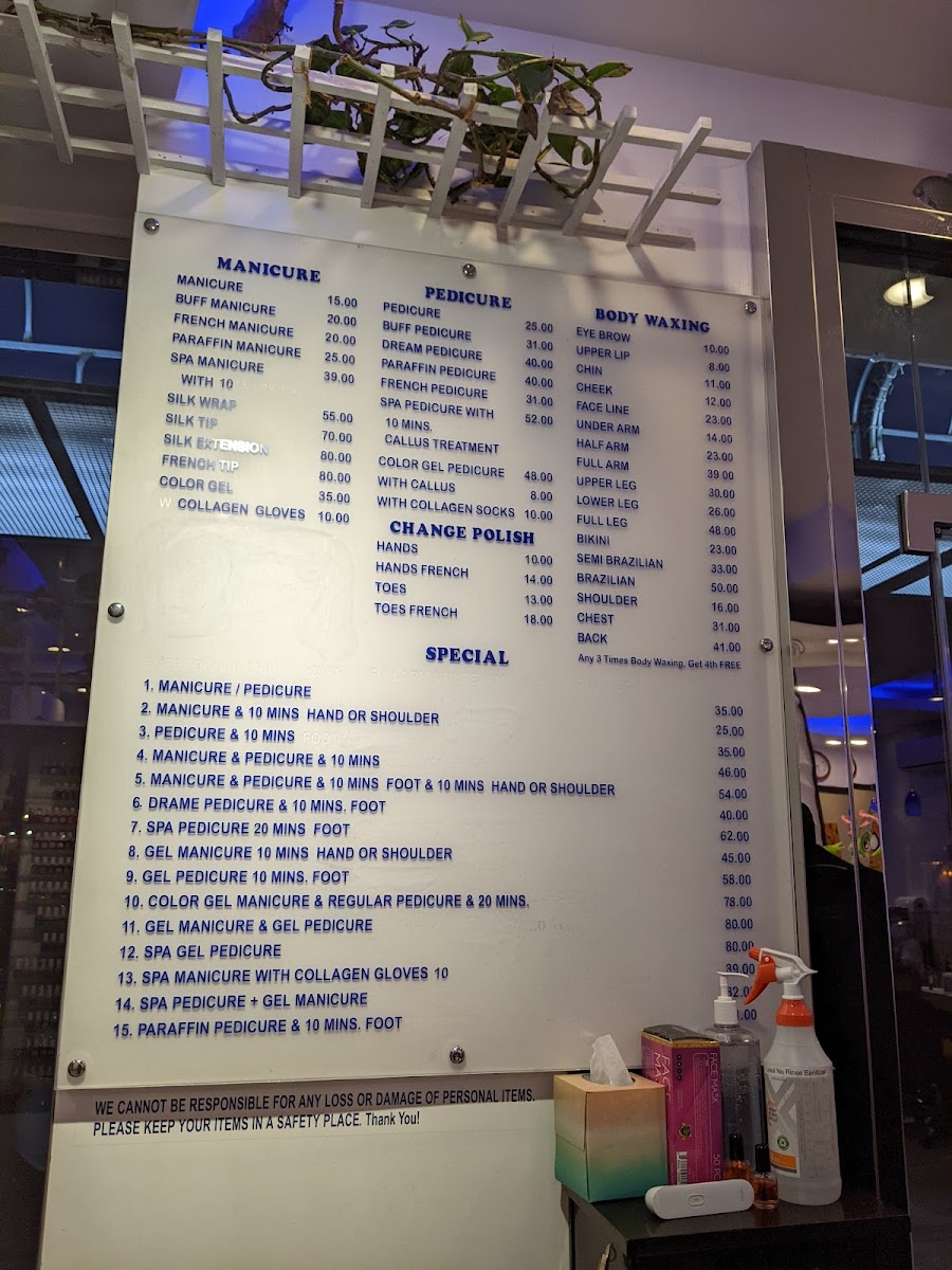 Happiest Nails and spa Menu